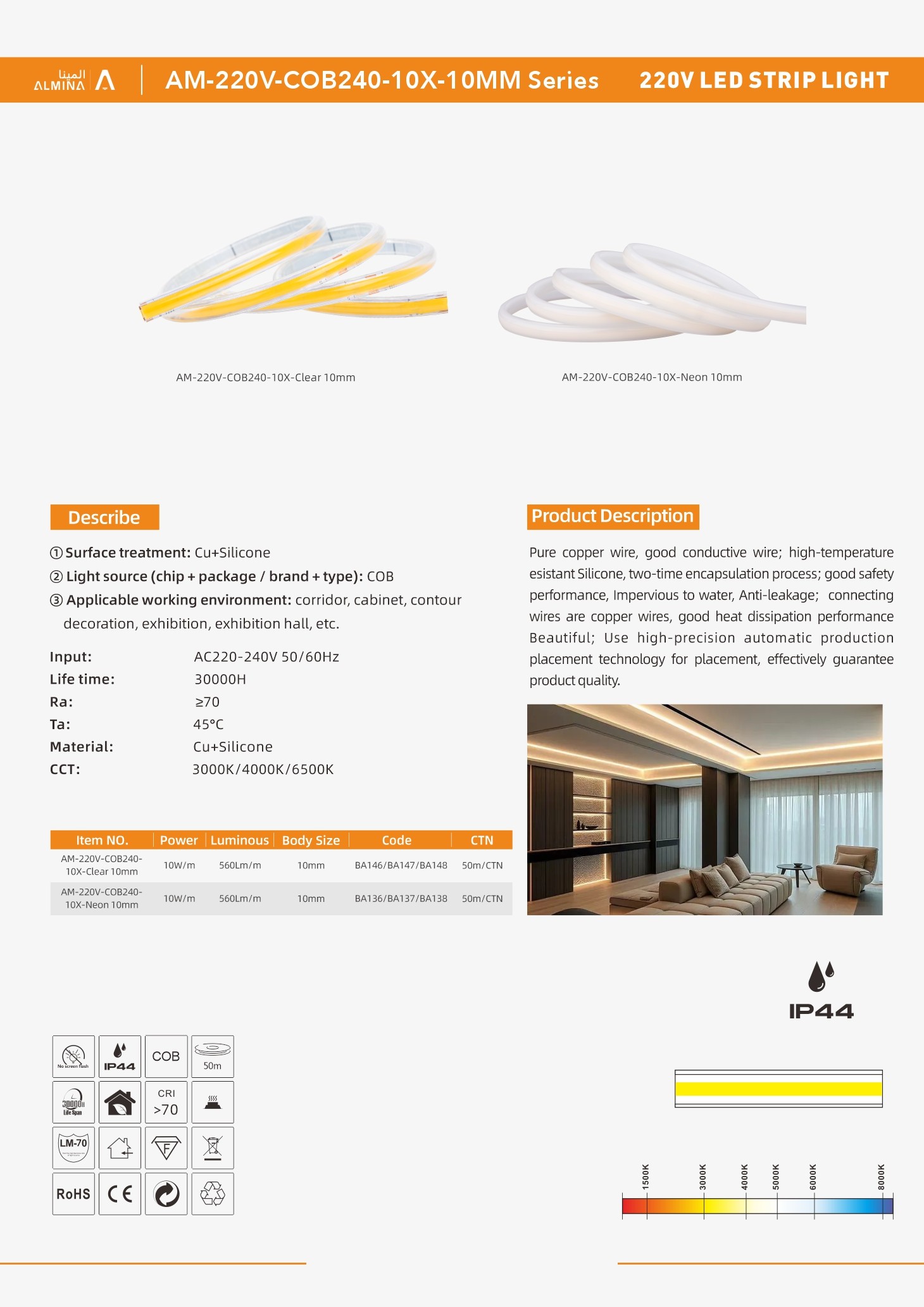 Model NO.: AM-220V-COB240-10X-Clear 10mm